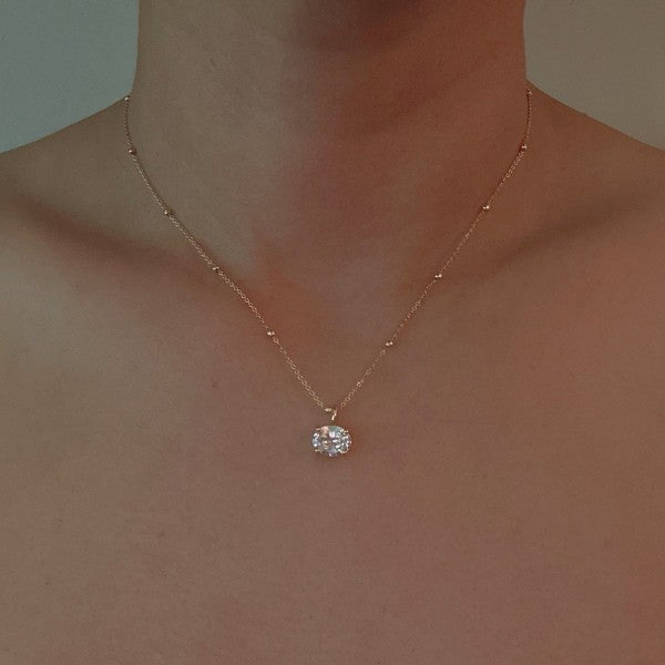 Add timeless sparkle to your look with the Oval Cut Spark Pendant Necklace. Featuring a stunning oval-cut stone set in a classic pendant style, this necklace brings refined elegance and brilliance to any outfit.